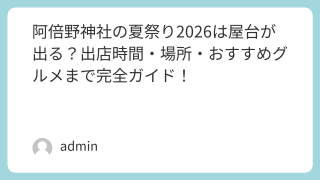 夏の風物詩といえば、やっぱり神社のお祭り!屋台のにおい、祭り囃子の音色、浴衣姿の人々…そんな夏の記憶を刻む場所として、大阪・阿倍野に鎮座する阿倍野神社の夏祭りが2026年も開催されます。「屋台は出るの?」「いつからいつまで楽しめる?」「子ど...